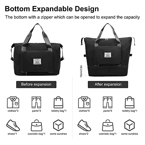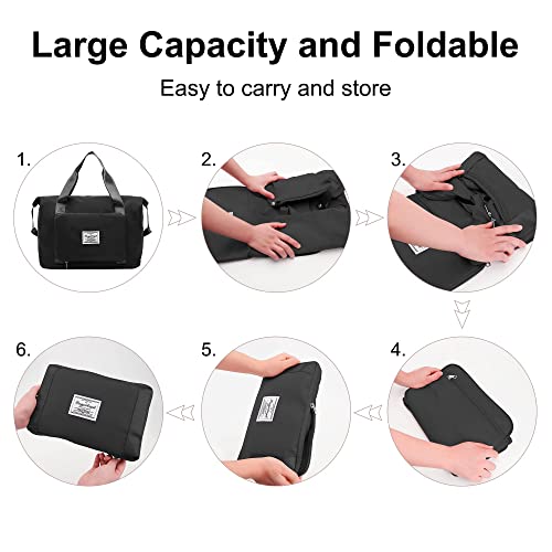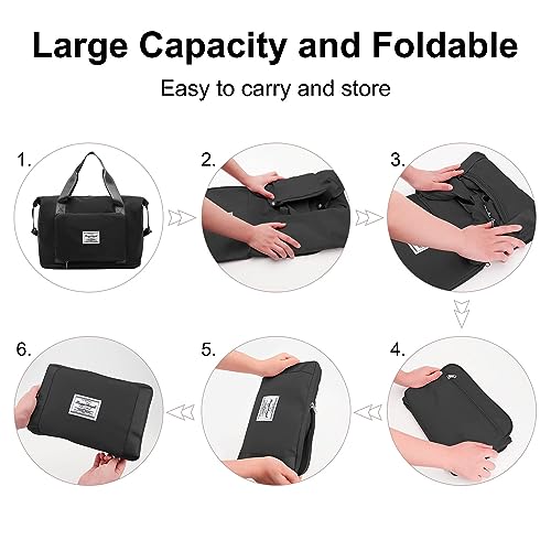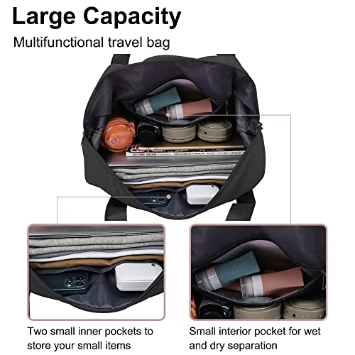 Maylisacc - شنطة سفر كبيرة وقابلة للطي، شنطة يد كبيرة توت مع فاصل للعناصر الجافة والرطبة للمبيت في اجازة نهاية الاسبوع وصالة الالعاب الرياضية للنساء من مايليساك, أسود
