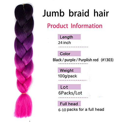 Mayloss - مجموعة وصلات شعر صناعي كروشيه مجدولة بنمط 3 اكس بوكس جامبو بطول 24 بوصة/وزن 100 جرام للقطعة للنساء الامريكيات من اصل افريقي، مكونة من 6 قطع، بالوان متدرجة (1301-1324)، لون (1303)