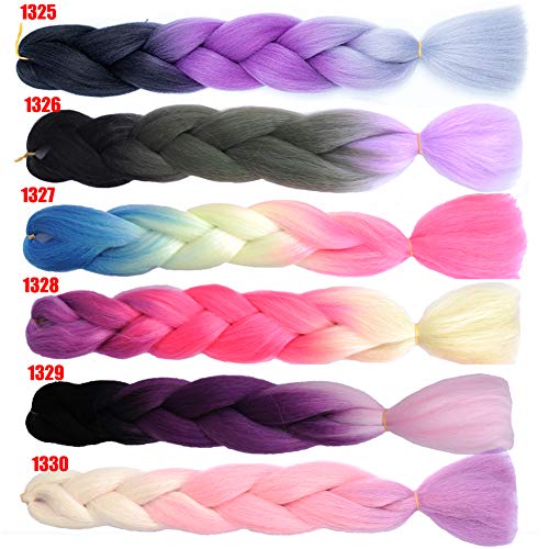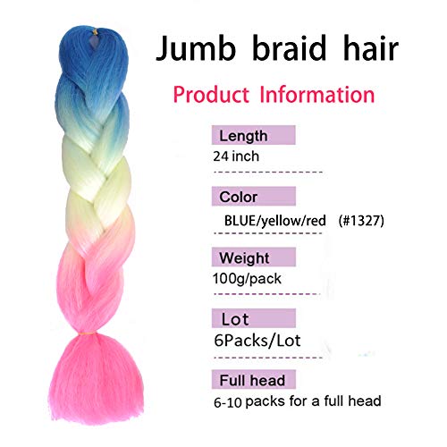 Mayloss - مجموعة وصلات شعر صناعي كروشيه مجدولة بنمط 3 اكس بوكس جامبو بطول 24 بوصة/وزن 100 جرام للقطعة للنساء الامريكيات من اصل افريقي، مكونة من 6 قطع، بالوان متدرجة (1301-1324)، لون (1327)