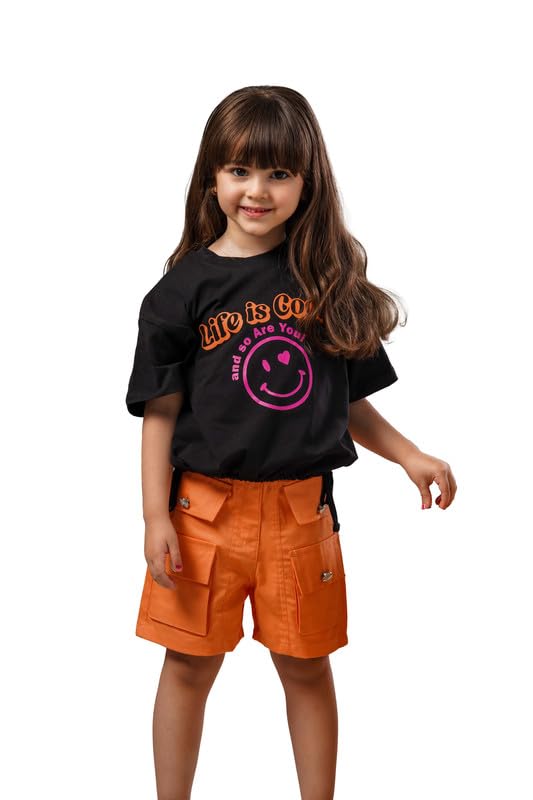 MayMuna - سالوبيت بكباسين نصف كم مع حاشية مرنة وشورت من مايمونا، طقم لطيف ومريح وسهل الارتداء للبنات 2895