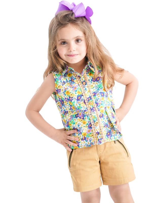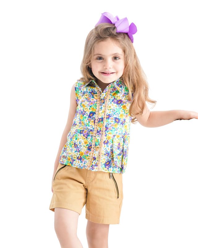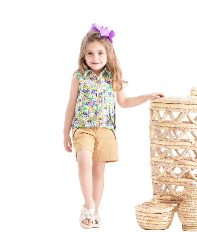 MayMuna - طقم شورت جبردين وبلوزة بوبلين بدون اكمام من ماي مونا 672، ملابس صيفية انيقة وخفيفة الوزن للبنات