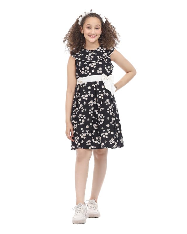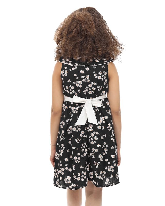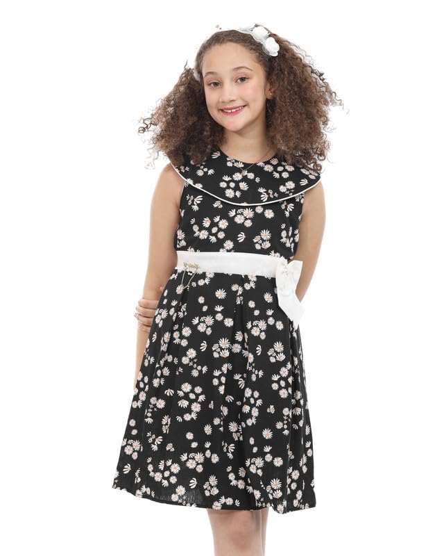MayMuna - فستان من قماش البوبلين بدون اكمام مع فيونكة امامية للبنات من ماي مونا، ناعم وانيق وجاهز للصيف، موديل 857