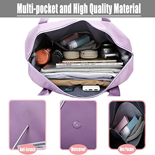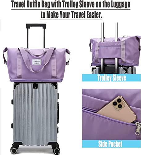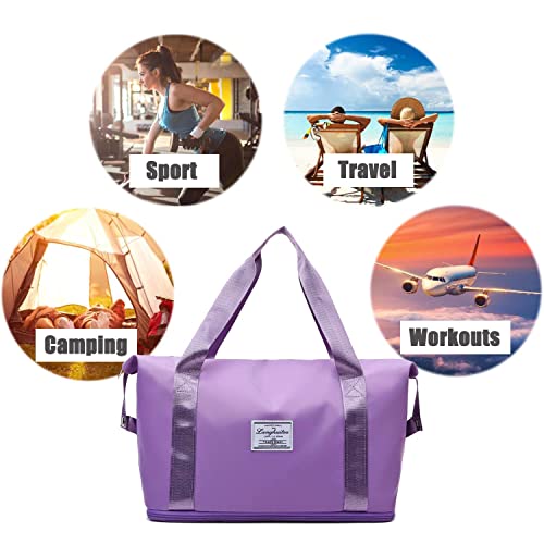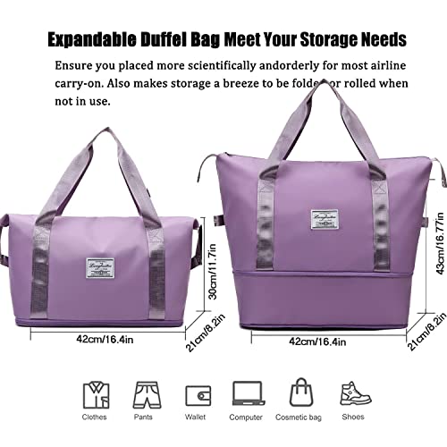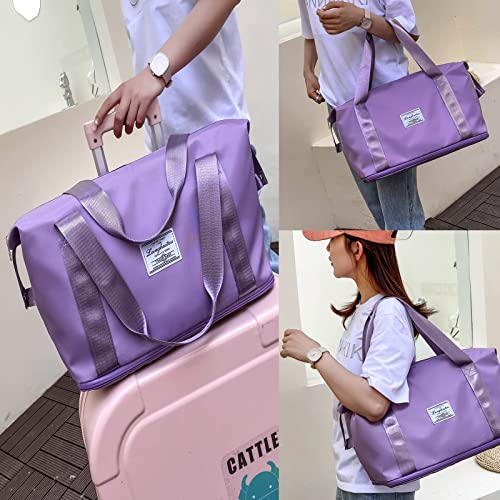 MAYZHOU - شنطة سفر قابلة للطي من القماش الخشن مع جيب لفصل الملابس الجافة والرطبة، شنطة دفل توت كبيرة رياضية خفيفة الوزن لصالة الالعاب الرياضية وعطلة نهاية الاسبوع للنساء والرجال, ارجواني فاتح