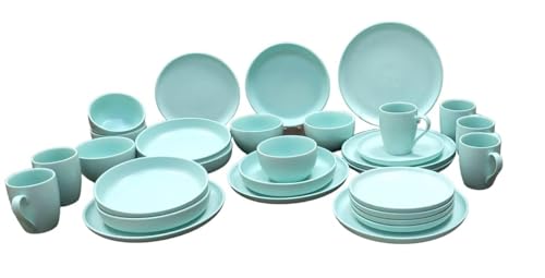 Mazaj - طقم عشاء بورسلين من مزاج 30 قطعة (المحتويات: 6 أطباق عشاء / 6 أطباق حلوى / 6 أطباق غويطة/ 6 أطباق عميقة/ 6 مجات) - لون أخضر مينت / تصميم سادة