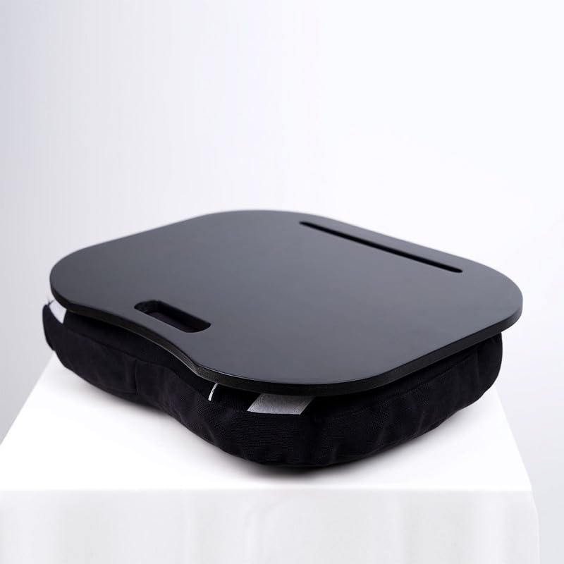 Mazajy - طاولة لاب توب ليزي لاب من الخشب الأسود والقماش من مزاجي، لون أسود، مقاس 47 سم (طول) × 37 سم (عرض)