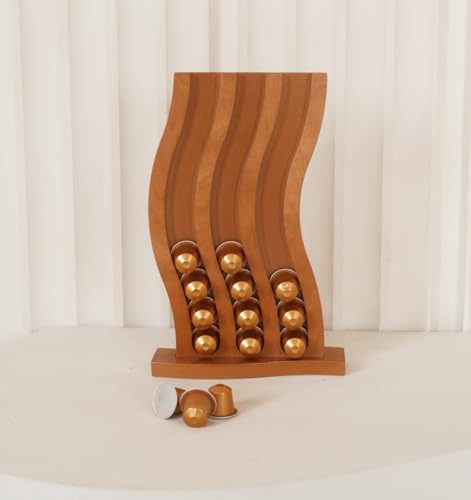 Mazajy - حامل كبسولات قهوة خشبي من مازاجي هوم، تصميم مموج، تخزين كبسولات القهوة، 22 × 34 سم، حامل بني الزان، يحمل 30 او 60 كبسولة (يحمل 30 كبسولة)