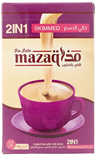 Mazaq - مشروب شاى بالحليب سريع الذوبان 2 فى 1 من مذاق، خالي الدسم - 12 كيس