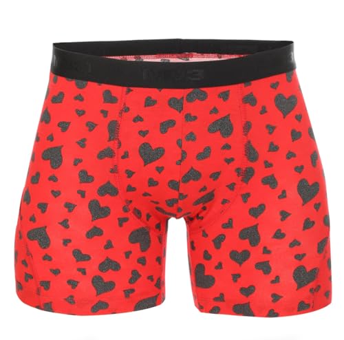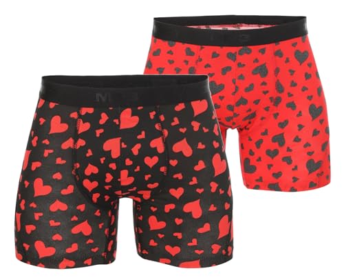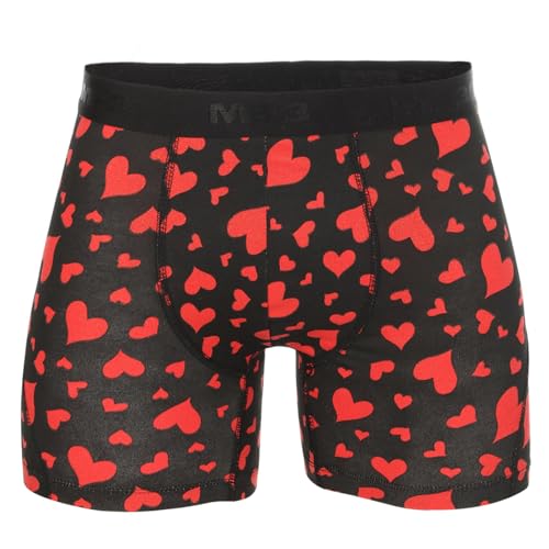 MB3 - شورت بوكسر مطبوع عليه قلوب للرجال من ام بي ثري، طقم من قطعتين (عبوة واحدة)