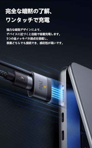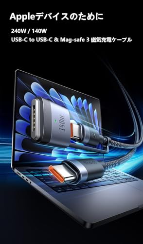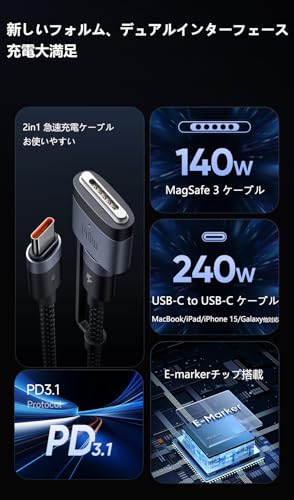 - 【240 واط / 140 واط USB-C إلى USB-C وكابل شحن مغناطيسي 3 ماج-سيف 】: شكل جديد، واجهة مزدوجة. الرضا عن الشحن، كيبل شحن مغناطيسي ماج سيف 3 بقدرة 140 واط، كيبل USB-C إلى USB-C 240 واط متوافق مع معايير الشحن السريع PD3.1 الجديدة، ومجهز بشريحة اي-ماركر، يشحن ماك بوك برو 16 انش حتى 55% في حوالي 30 دقيقة. شفط بلمسة واحدة وشحن سريع في ثوانٍ. متوافق مع موديلات ماك: متوافق مع موديلات ماك مثل ماك بوك اير (شريحة ام 2، موديلات 2022)، ماك بوك برو 14 انش (موديلات 2021/2023)، ماك بوك برو 16 انش (موديلات 2021/2023). يدعم كيبل الشحن السريع 2 في 1 أجهزة USB-C مثل ماك بوك برو/اير، ايباد برو/اير، سلسلة ايفون 16/15، اكسبيريا/جالكسي/اندرويد وأكثر من ذلك