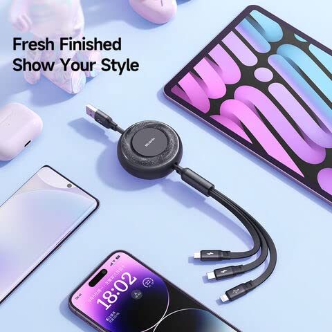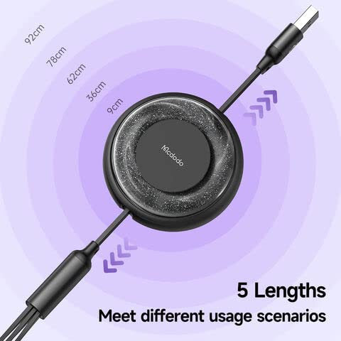 - الموديلات المتوافقة: يدعم كابل الشحن القابل للسحب 3 في 1 أجهزة USB الطرفية مثل طرف لايتنينج (iOS) ومحطة النوع C وأطراف Micro USB.