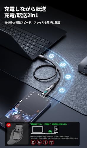 - رقاقة إدارة ذكية: رقاقة ذكية مدمجة تضبط الجهد الحالي تلقائيًا لدعم الشحن المستقر والسريع. 【نقل بيانات عالي السرعة】: يدعم سرعة نقل 480 ميجابت في الثانية، شحن سريع في وقت واحد ونقل عالي السرعة. (*هذا المنتج يدعم فقط نقل البيانات بين الهاتف الذكي واللاب توب. لا يدعم وظيفة او تي جي، لذلك لا يمكنه دعم ذاكرة USB أو سماعات الأذن أو الماوس.)