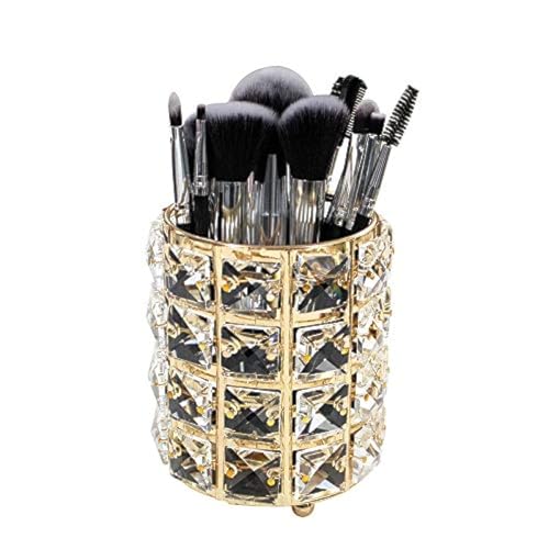 Generic - حامل ومنظم فرش الماكياج من مكدو تخزين مستحضرات التجميل بتصميم كريستالي مصنوع يدويا مناسب للتسريحة والحمام وغرفة النوم والمكتب ذهبي