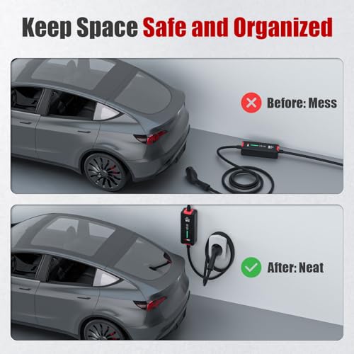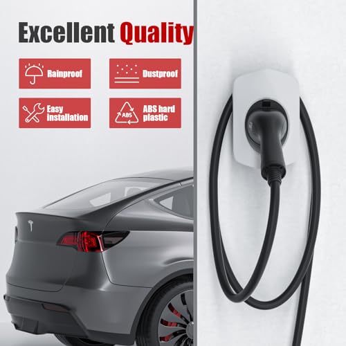 - توفير المساحة والترتيب - الغطاء مائل لحماية القابس بشكل أفضل من المطر والغبار. هذا الحامل الذي يثبت على الحائط، يحمل قابس كابل الشحن من النوع 2 أثناء تعليق الكابلات بطول 10 أمتار أو أكثر. يأخذ شاحن اي في نظيفًا ويفرز المرآب المنظم.
