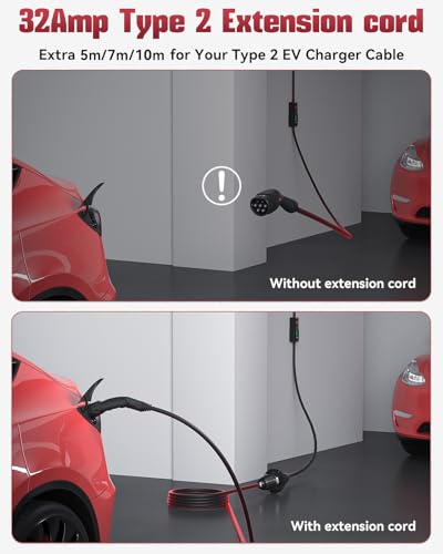 - وصلة كابل السيارة الكهربائية بطول 7 م: هل تواجه مشكلة في شحن سيارتك الكهربائية لأن منفذ الشحن بعيد جدًا عن الشاحن وكابل الشحن القياسي قصير جدًا؟ وصلة كابل اي في من النوع 2 الإضافي بطول 7 م يحل هذه المشكلة دون عناء. حتى إذا كانت سيارتك الكهربائية متوقفة خارج المرآب أو حتى بعيدة عن قاعدة الشحن، فلا يزال بإمكانك شحنها بسهولة.