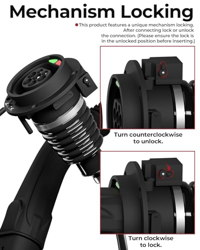 - يضمن القفل اليدوي شحنًا ثابتًا: مزودة بقفل يدوي، يضمن منفذ الشحن هذا اتصالًا أكثر استقرارًا وأمانًا أثناء الشحن. تساعد مقياس السلامة الإضافية هذه على منع الفصل العرضي الذي قد يسببه الصدمات أو الاصطدامات المفاجئة. مما يحمي سلامة عملية الشحن الخاصة بك ويضمن مصدر طاقة موثوق وغير متقطع لسيارتك الكهربائية.