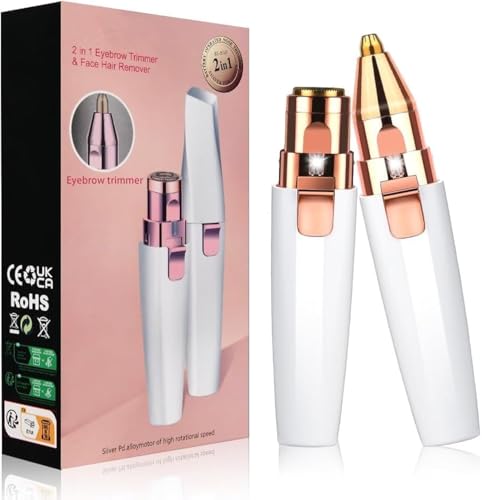 McMola - ماكينة إزالة وحلاقة شعر الوجه 2 في 1 للنساء، أداة تشذيب شعر الحواجب بدون ألم كهربائية لشعر فوق الشفة والأنف والوجه والجسم والشعر الناعم والخفيف بإضاءة ليد مدمجة للنساء من ماكمولا