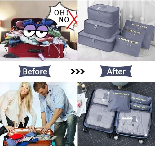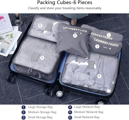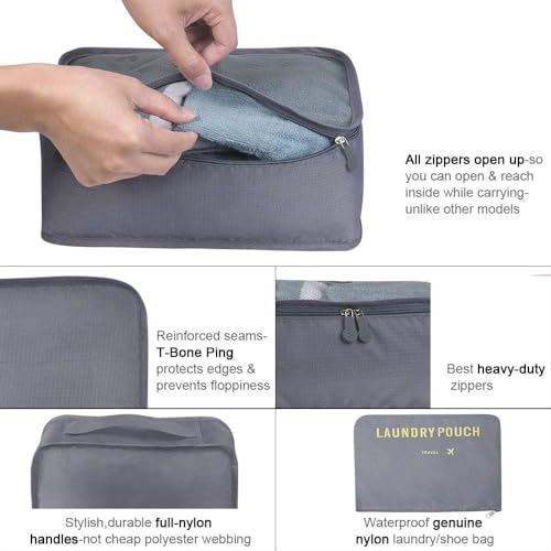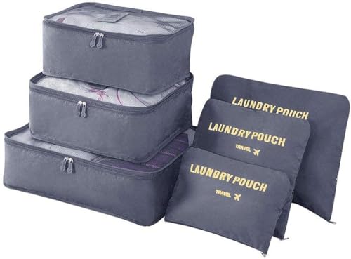 McMola - ماكمولا شنط تعبئة منظمة للسفر مجموعة من 6 قطع السفر لتنظيم الملابس وامتعة رمادي S L M نايلون