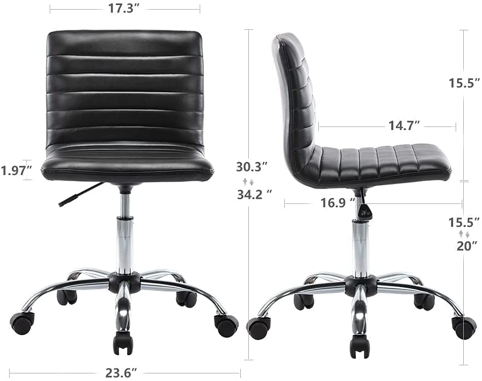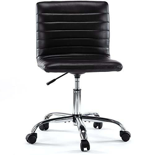 MCQ - كرسي مكتب بلا ذراع من ام سي كيو، كرسي مكتب منزلي عصري من الجلد الصناعي مع عجلات، ارتفاع قابل للتعديل، دوران 360 درجة