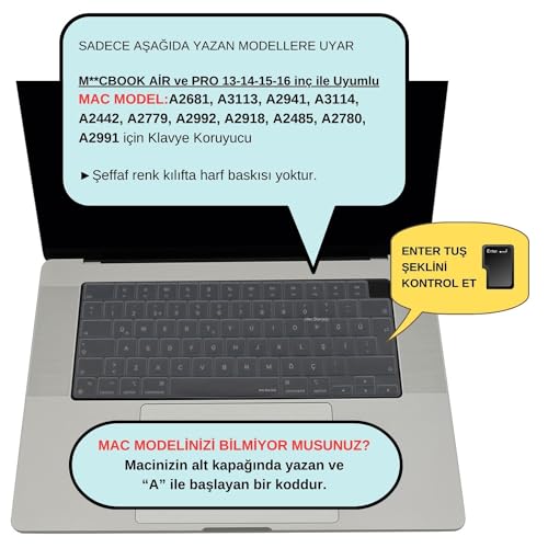 McStorey - غطاء واقي للوحة مفاتيح ماك بوك اير برو متوافق مع M1-M2-M3، (UK-EU انجليزي) A2681 A3113، A2941 A3114، A2442 A2779 A2992 A2918، A2485 A2780 A29991، بلون شفاف من ماكستوري