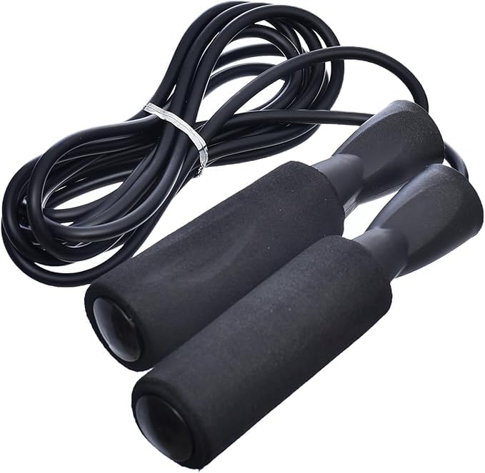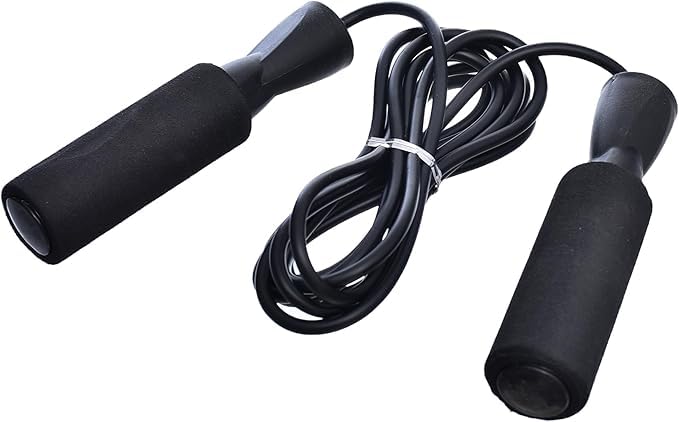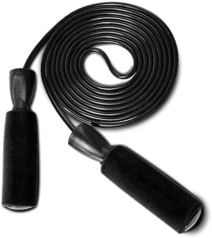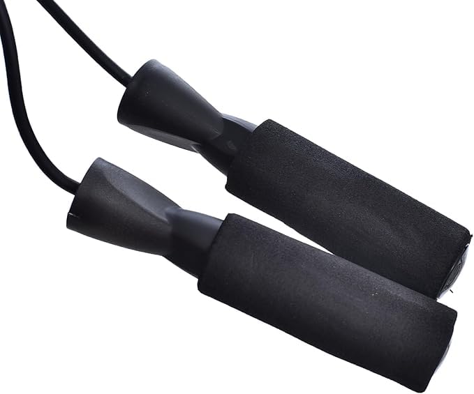 M D Stay Fit - حبل قفز اسود من ام دي ستاي فيت فيتنيس، مقابض اسفنجية، محمل محمل