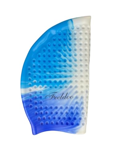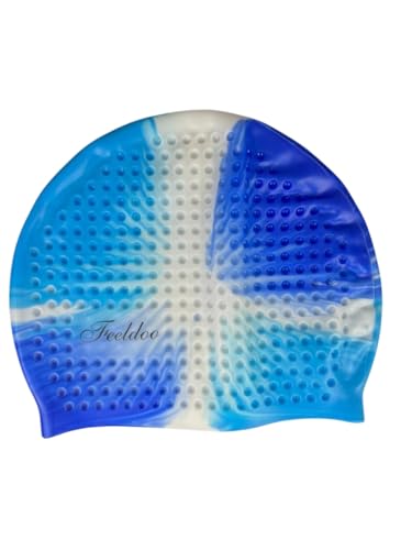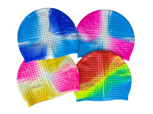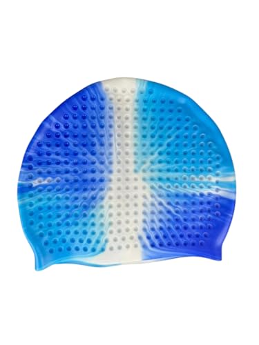 M D Stay Fit - بونيه سباحة من السيليكون المنسوج متعدد الألوان من ام دي ستاي فيت، تصميم مصبوغ بطابع تاي داي مع نمط فقاعات، مقاوم للماء للسباحين البالغين