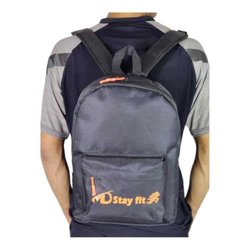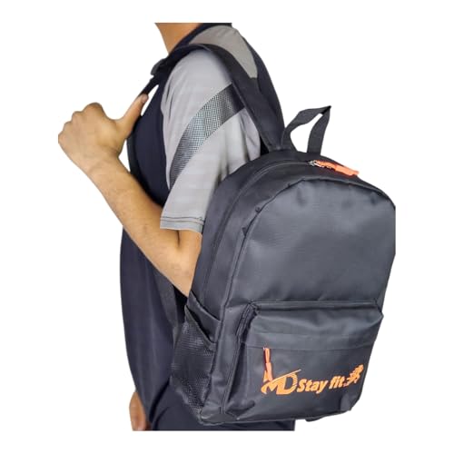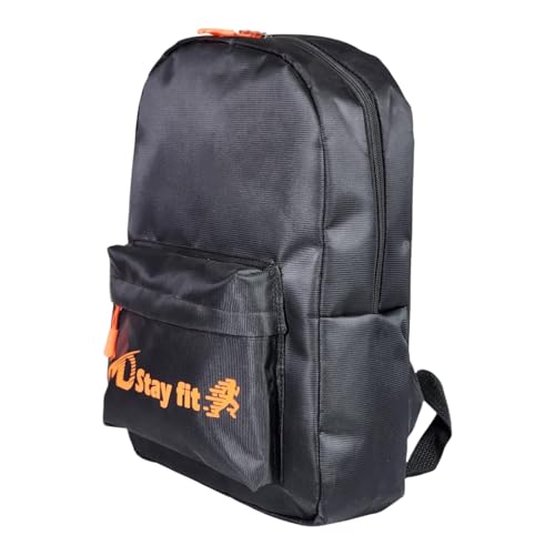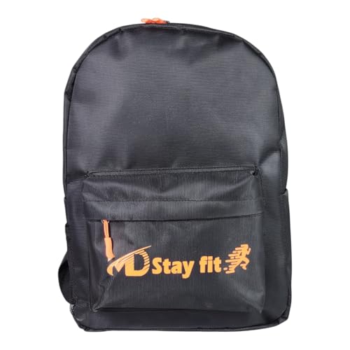 M D Stay Fit - شنطة ظهر رياضية خفيفة الوزن مع شعار برتقالي من ام دي ستاي فيت، أسود