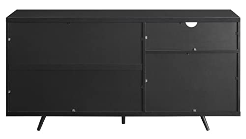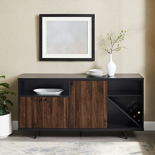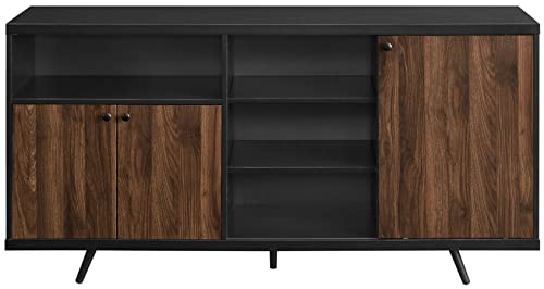 MDA Designs - خزانة جانبية فاخرة كرانبروك كبيرة من خشب الجوز مع أرجل سوداء و6 أرفف عصرية ببابين وباب واحد منزلق من ام دي ايه ديزاينز