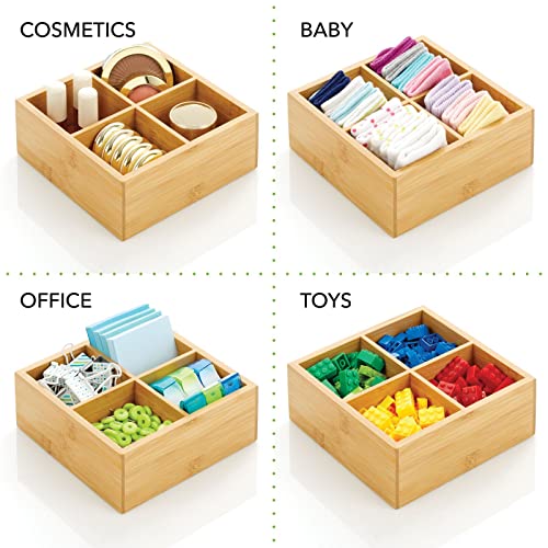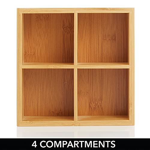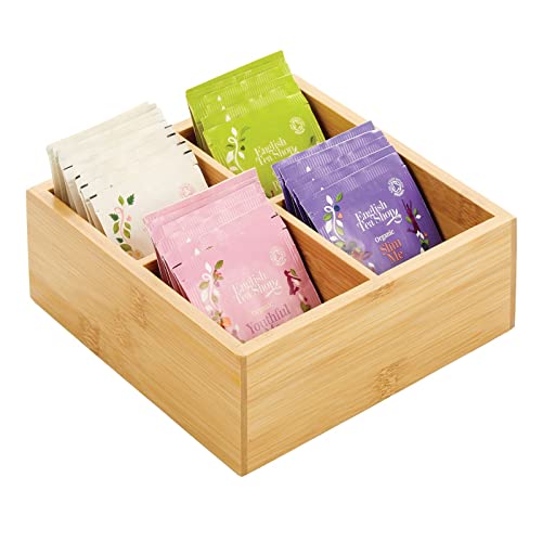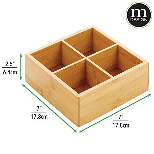 mDesign - صندوق منظم تخزين المطبخ من الخيزران - 4 أقسام مقسمة بجزء علوي مفتوح، حامل مزخرف لأكياس الشاي والعبوات والأغراض الصغيرة والاكسسوارات من ام ديزاين- خشب طبيعي فاتح