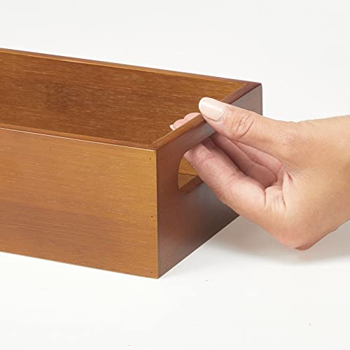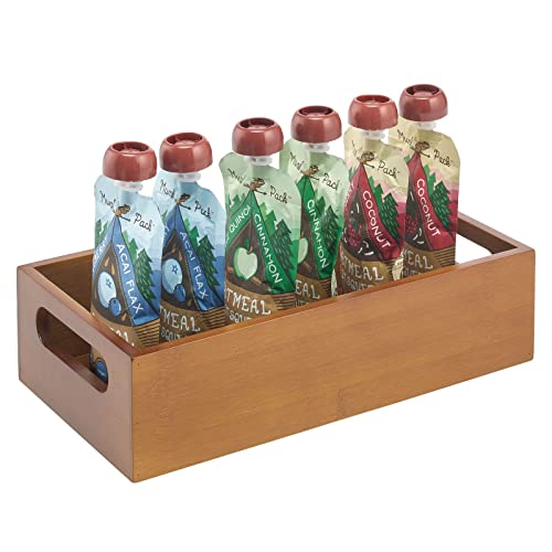 mDesign - سلة تخزين الطعام من خشب الخيزران مدمجة بمقابض لدولاب المطبخ والمخزن والرف لتنظيم اكياس التوابل ومزيج البودرة والتوابل والوجبات الخفيفة المعباة لون بني من ام ديزاين