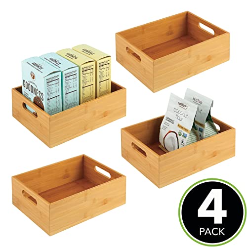 mDesign - صندوق تخزين منظم من خشب الخيزران مفتوح من الأعلى مع مقابض مدمجة، للمطبخ وتنظيم المؤن وحمل أدوات المائدة وصناديق السلع الجافة ومستلزمات الطبخ ومجموعة ايكو من ام ديزاين - لون طبيعي - 4 قطع