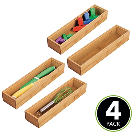 mDesign - منظم ومقسم أدراج مطبخ تصميم مستطيل من خشب الخيزران - فاصل أدراج قابل للتكديس لأدوات المائدة وأدوات المطبخ من ام ديزاين - مجموعة من 4 قطع - لون طبيعي