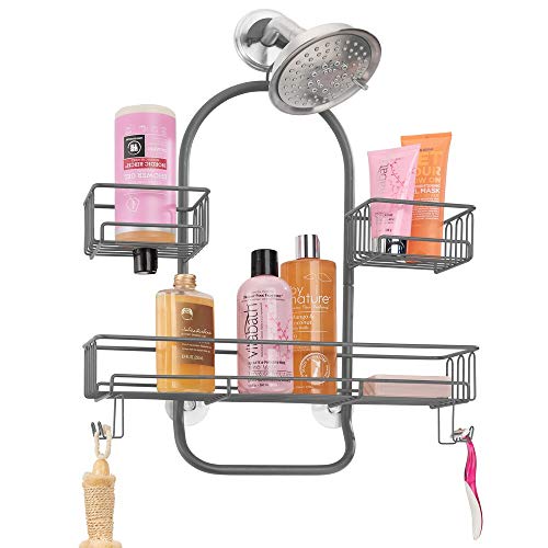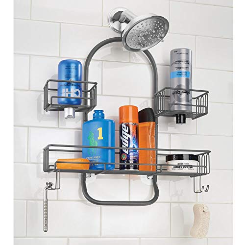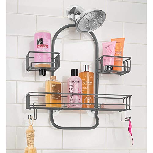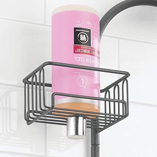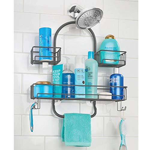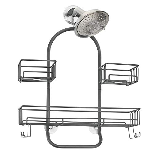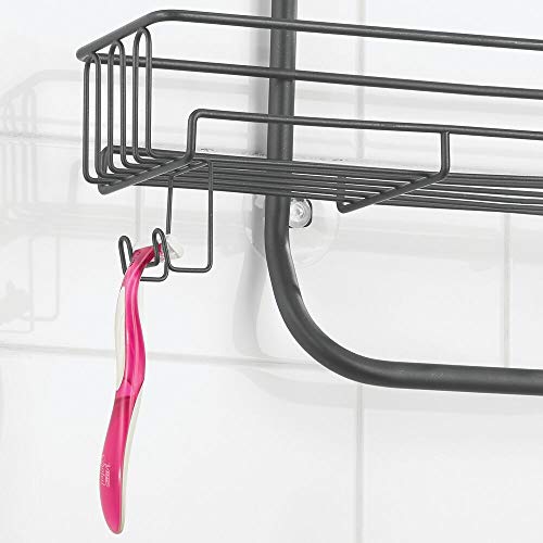 mDesign - علبة حوض استحمام وأسلاك معدنية عريضة للغاية من ام ديزاين، منظم تخزين معلق مع خطافات وسلال مدمجة على مستويين للشامبو وغسول الجسم والليفة- مقاوم للصدأ- رمادي جرافيت