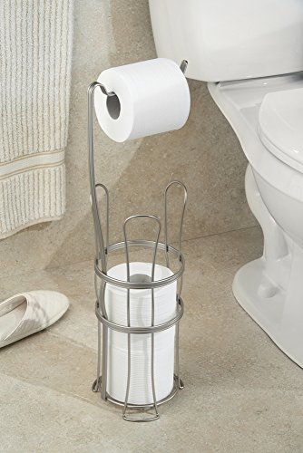 mDesign - حامل ورق تواليت قائم بذاته للتخزين في الحمام من ام ديزاين - ساتان