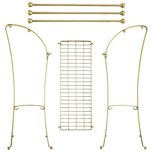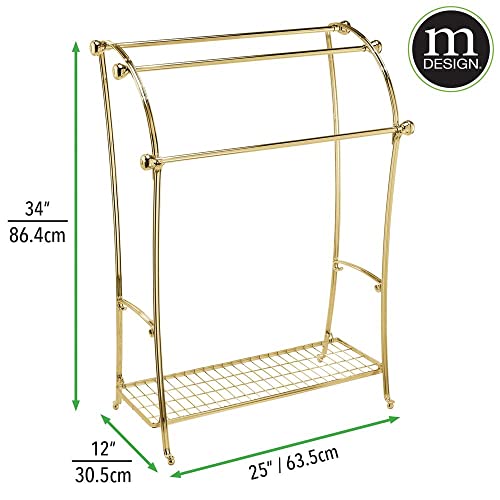 mDesign - ام ديزاين حامل مناشف قائم بذاته - حامل مناشف كبير مع رف لملحقات الحمام - حامل مناشف معدني مع قضبان تعليق متعددة - نحاسي