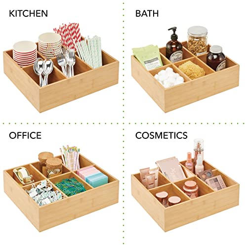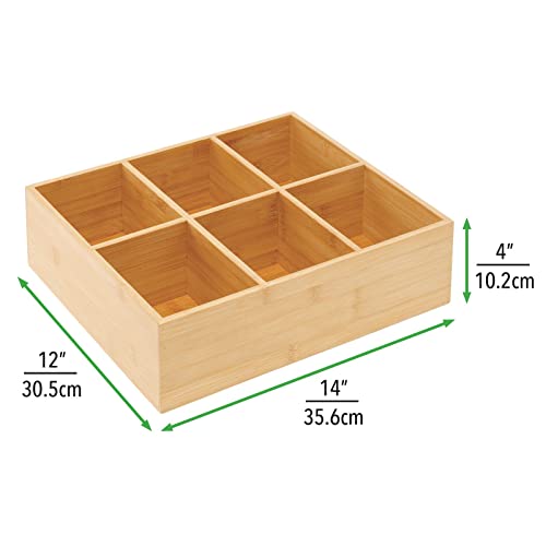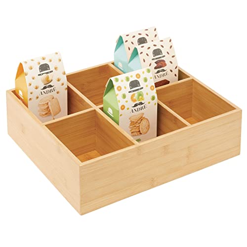 mDesign - منظم مطبخ من ام ديزاين، صندوق تخزين خشبي صغير لعناصر المطبخ - حامل عملي لأكياس الأعشاب والتوابل والقهوة والشاي مع 6 أقسام - طبيعي