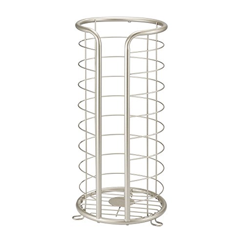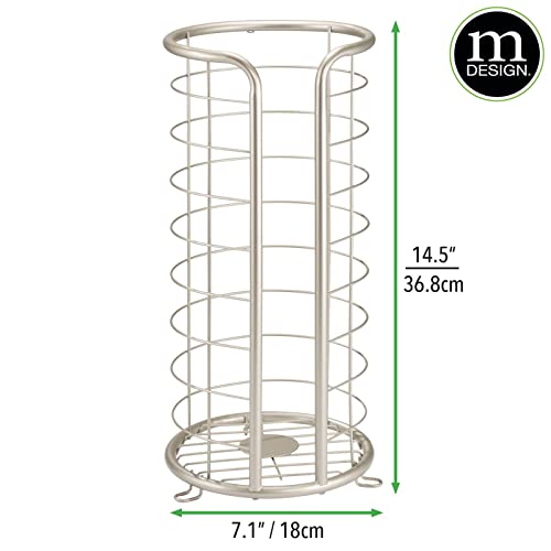 mDesign - حامل منظم ورق التواليت المعدني القائم بذاته من إم ديزاين، 3 بكرات من تخزين مناديل التواليت الكبيرة، ملحقات ديكور الحمام لتحت الحوض، والزينة، ورف الخزانة الداخلي، مجموعة أومني، اللون: ساتان