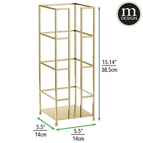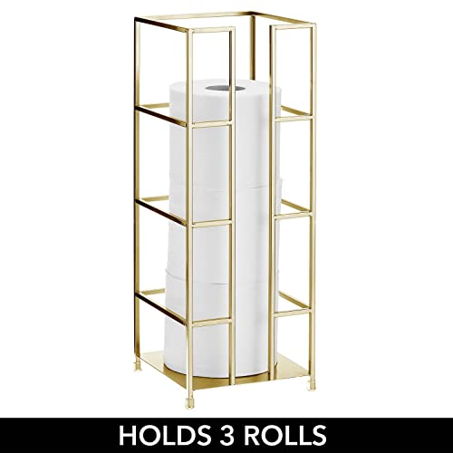 mDesign - حامل معدني قائم بذاته لمناديل الحمام الورقية، حامل علبة تخزين 3 لفافات مناديل جامبو للحمام تحت الحوض، الرف، بجانب طاولة الزينة، الخزانة، الزاوية، مجموعة سيتي - نحاس ناعم