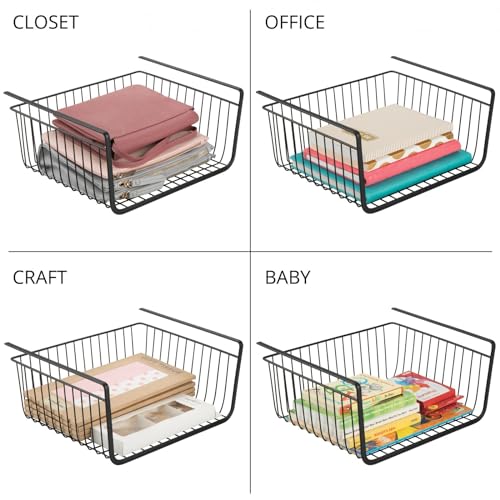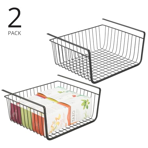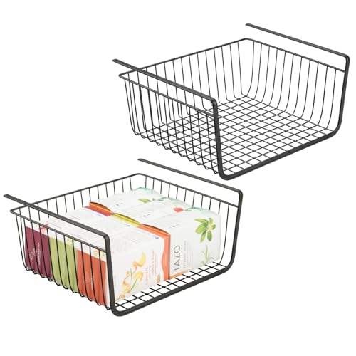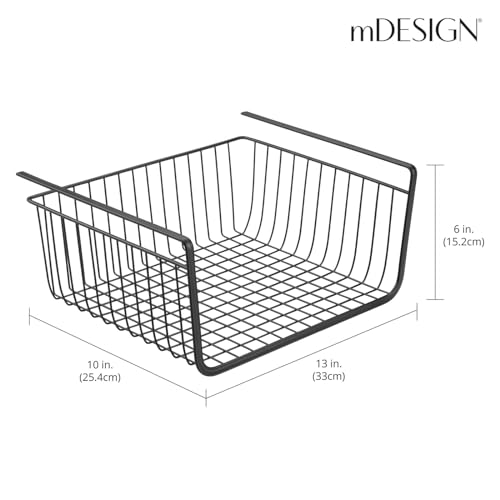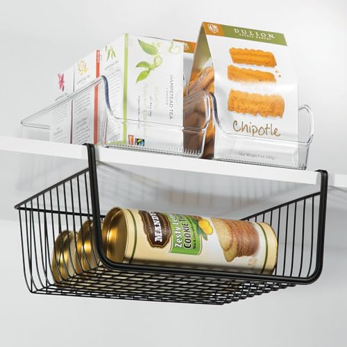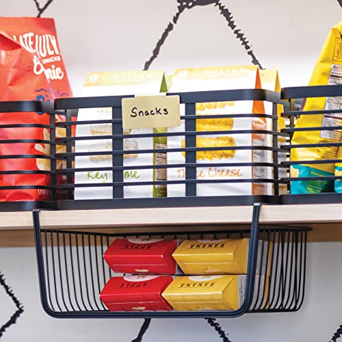 mDesign - سلة معدنية تحت الرف لتخزين المطبخ، سلة سلكية منزلقة لبيت المزرعة، منظم كبير مفتوح من الأمام للطعام والمشروبات والوجبات الخفيفة من مجموعة هايد من ام ديزاين، عبوتان، لون أسود