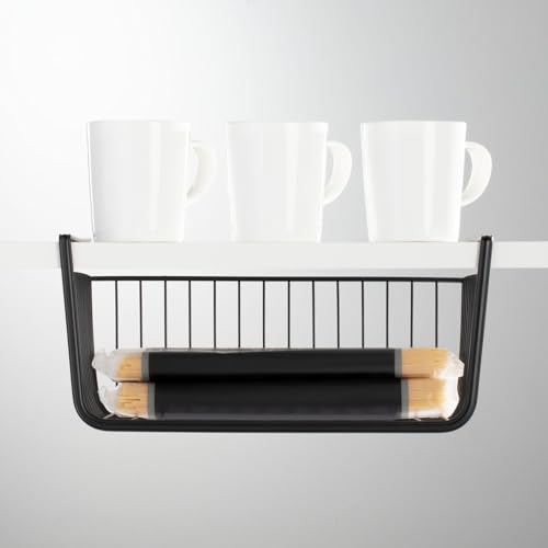 - مساحة تخزين تحت الرف الصحي: تنزلق سلة التخزين على أرفف الخزانة والخزانات وخزانة لتوفير مساحة تخزين إضافية؛ على الفور اضف رف تخزين إلى أي رفوف موجودة والاستفادة من المساحة غير المستخدمة؛ الحل الأمثل للتخزين والتنظيم للمطابخ العصرية والمخزن الحديثة؛ مثالية للغلاف البلاستيكي، ورق الشمع، وورق البرشمان، وأكياس الساندويتشات، والباستاس، والحساء، والسلع المعلبة وزجاجات المياه، والسلع المخبوزة، والوجبات الخفيفة وأساسيات المطبخ. مثل مستلزمات الخبز و دبابيس أخرى؛ مجموعة من قطعتين