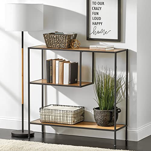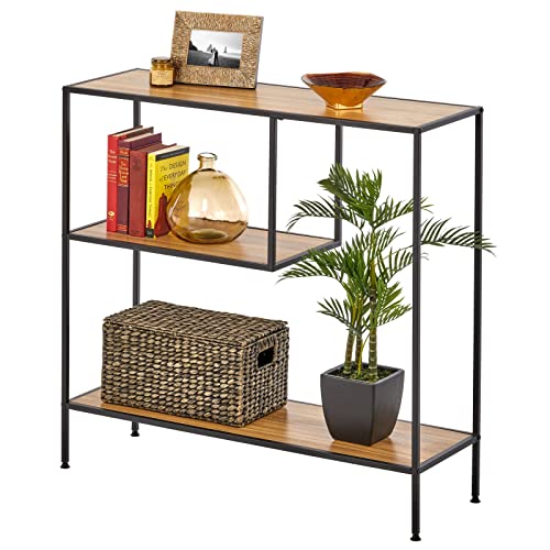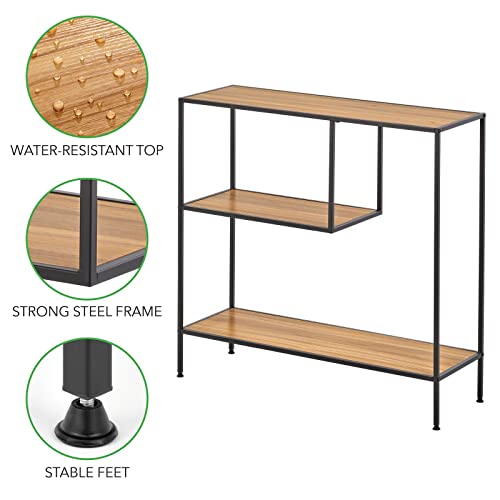 mDesign - طاولة كونسول خشب عصرية مع رف من ام ديزاين وحدة أثاث لغرفة المعيشة وغرفة النوم والمدخل بإطار معدني متين وأرجل قابلة للتعديل مقاومة للماء سطح خشبي لون أسود - الجوز الاسكندنافي