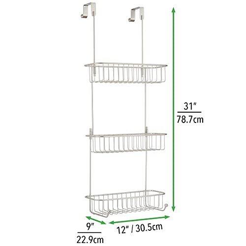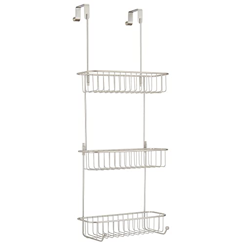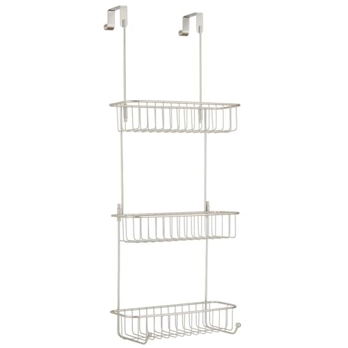 mDesign - منظم دش معلق من ام ديزاين للتعليق على الدش - رف رائع بدون حفر - معدني مع ثلاث سلال وأربعة خطافات للملحقات - فضي غير لامع
