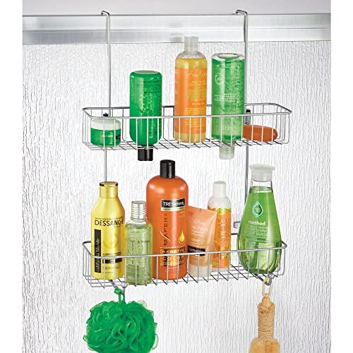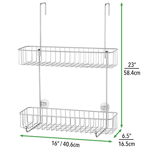 mDesign - حامل دش من ام ديزاين - معدن مقاوم للصدأ وسهل التركيب - سلال فوق الباب مع طبقتين - علبة معلقة بدون الحاجة إلى ثقب - كروم