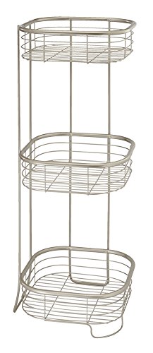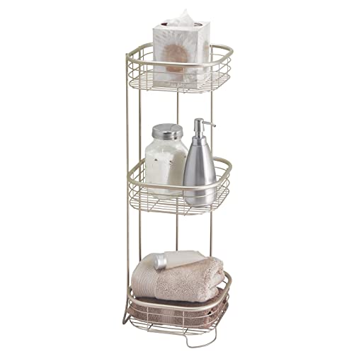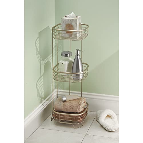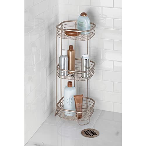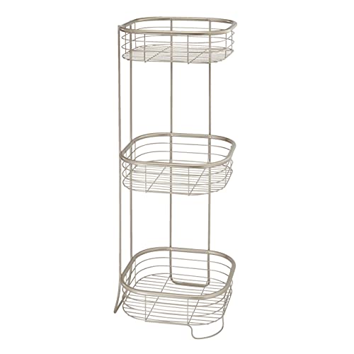 mDesign - ام ديزاين رف زاوية الدش - علبة دش عملية للزاوية للشامبو وجل الاستحمام والمناشف والصابون وغيرها - حامل قائم مع 3 طبقات من السلال المصنوعة الستانلس ستيل - فضي غير لامع