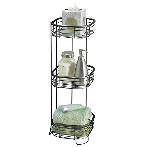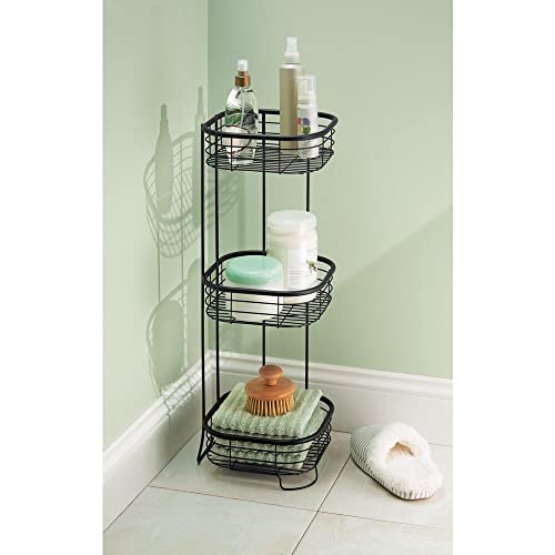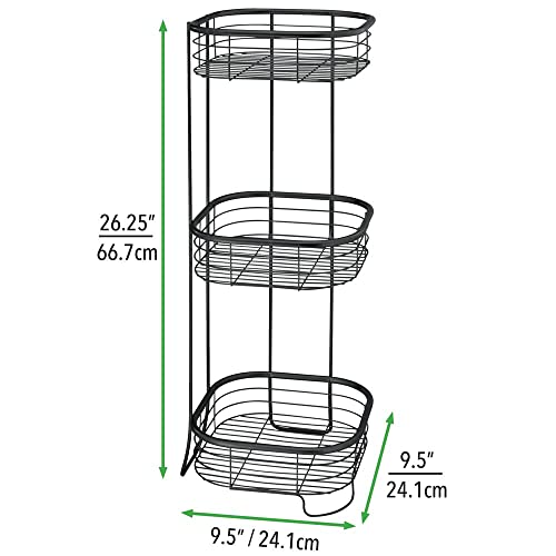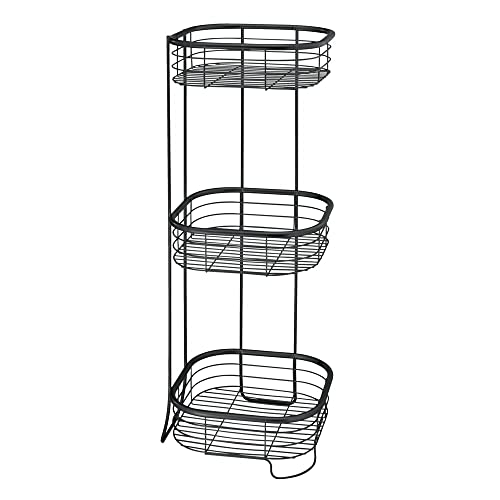 mDesign - ام ديزاين رف زاوية الدش - منظم عملي للشامبو وجل الاستحمام والمناشف والصابون والمزيد - دش قائم بذاته مع 3 طبقات من السلال المصنوعة الستانلس ستيل - اسود غير لامع