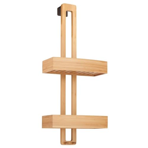 mDesign - ام ديزاين رف دش بدون ثقب - حامل تخزين معلق - ادوات الحمام الخشبية والمعدنية - سلال اكسسوارات الدش - خيزران