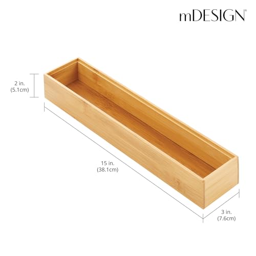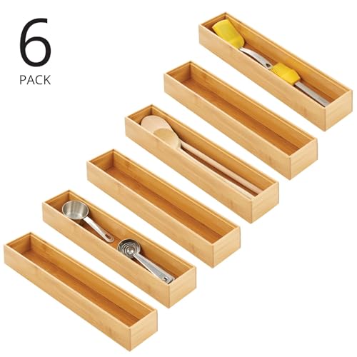 mDesign - ام ديزاين صينية تنظيم خزانة المطبخ والثلاجة بتصميم رفيع من الخيزران - صندوق تخزين لأدوات المائدة وملاعق التقديم وأدوات الطبخ والاجهزة - مجموعة ايكو - عبوة من 6 قطع، خشب طبيعي