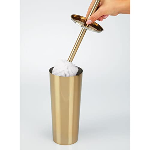 mDesign - فرشاة مرحاض رفيعة من الستانلس ستيل من ام ديزاين، حامل فرشاة مرحاض كلاسيكي للحمام ومرحاض الضيوف، فرشاة مرحاض مع حامل فرشاة عملي، نحاسي