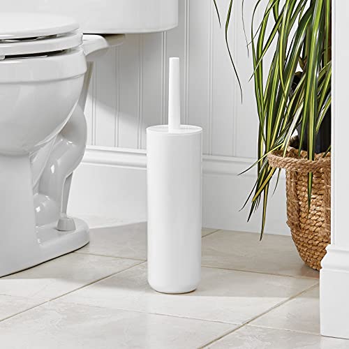 mDesign - طقم فرش مرحاض من ام ديزاين - فرشاة مرحاض صحية وحامل للحمام - حامل فرشاة مرحاض عملي - لون أبيض