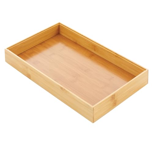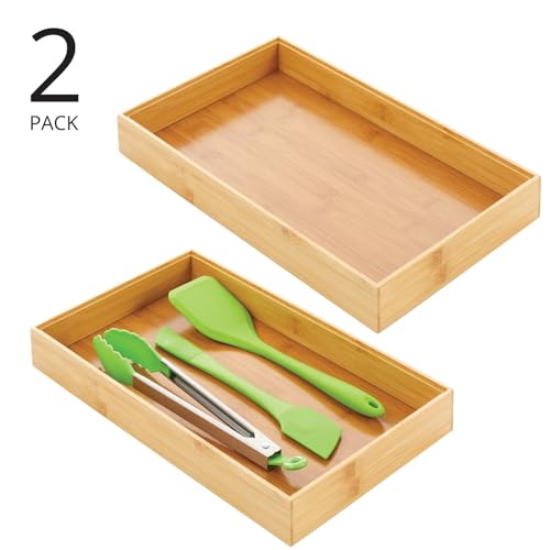 mDesign - ام ديزاين منظم ادراج خشبي من الخيزران - صينية صندوق تخزين قابلة للتكديس بطول 15 انش لادراج المطبخ - الخزانة - ادوات المائدة والاواني الفضية وملعقة مسطحة وحامل - مجموعة ايكو - عبوتان خشب