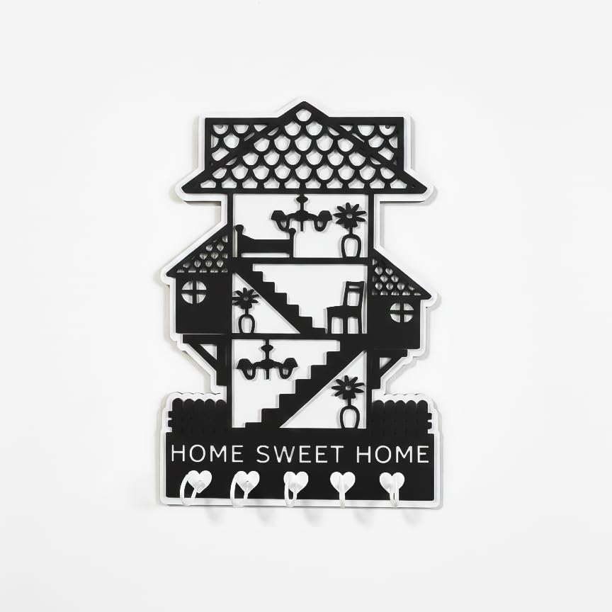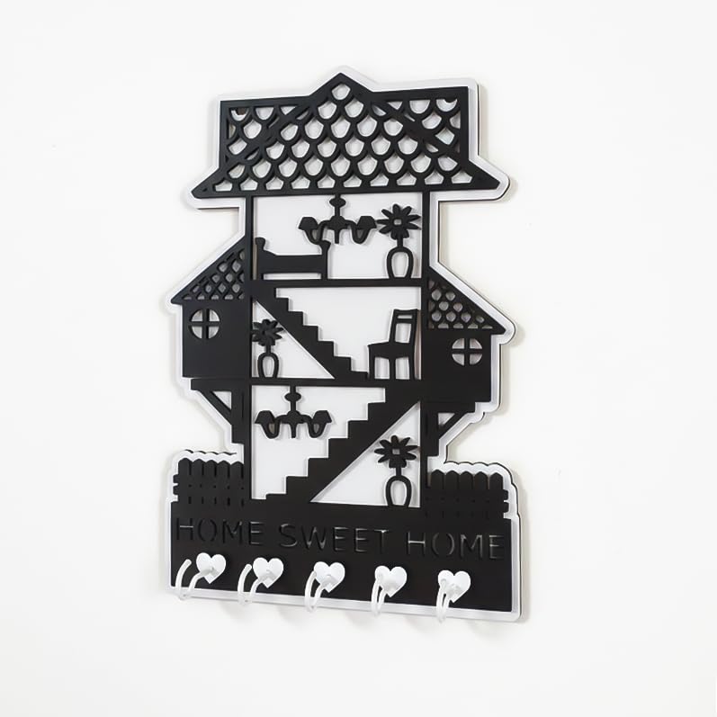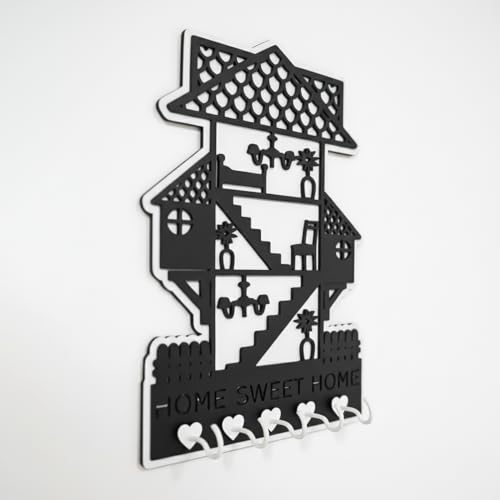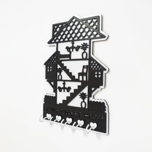 Generic - علاقة مفاتيح للمنزل من الخشب مميزة بشكل البيت, بالون اسود و ابيض مصنوع من خشب MDF أسباني فاخر بسمك 8 ملم ليضفي الي منزلك الجمال و الاناقة